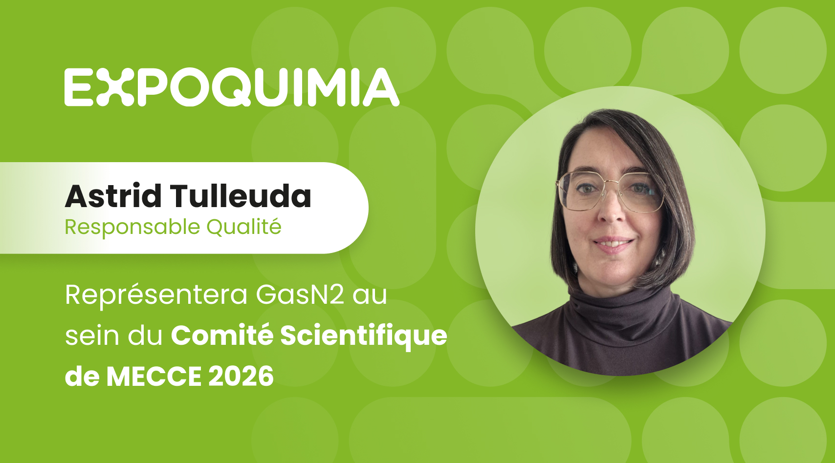 Astrid Tulleuda, Responsable Qualité chez GasN2, fera partie du Comité Scientifique du Mediterranean Engineering Chemistry Congress (MECCE) 2026, le congrès d’ingénierie qui se tient dans le cadre d’Expoquimia et qui réunit chercheurs, centres technologiques, ingénieries et professionnels de l’industrie chimique et des procédés.
